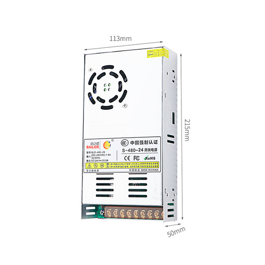 Feisman SMPS Power Module S-480-24 100-245VAC Single Output AC DC 24V 480W Enclosed Switching Power Supply